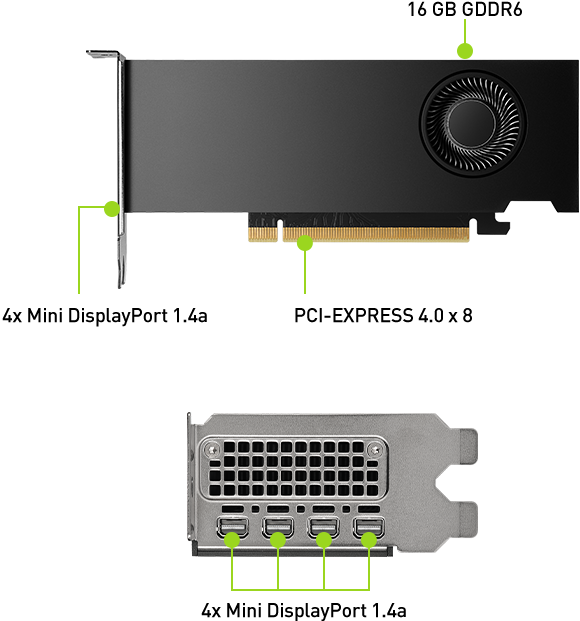 Ada Lovelace Architecture, 16GB GDDR6 with ECC, CUDA Cores 2,816,